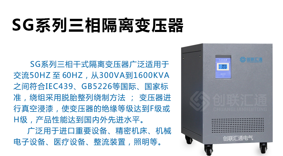 廣泛用于進(jìn)口重要設(shè)備、機(jī)密機(jī)床、機(jī)械電子設(shè)備、醫(yī)療設(shè)備、整流裝置、照明等,安裝場所應(yīng)無嚴(yán)重影響變壓器絕緣強(qiáng)度的氣體,蒸汽,化學(xué)性沉積,污垢,導(dǎo)電塵埃及無其他易爆易燃易腐蝕的物質(zhì)。