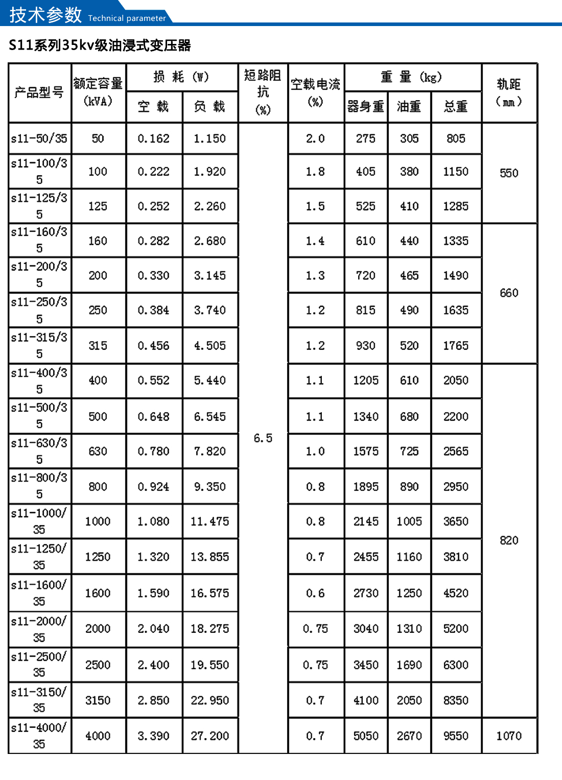 【額定容量】:30-2500kva      【額定電壓】:35kv
