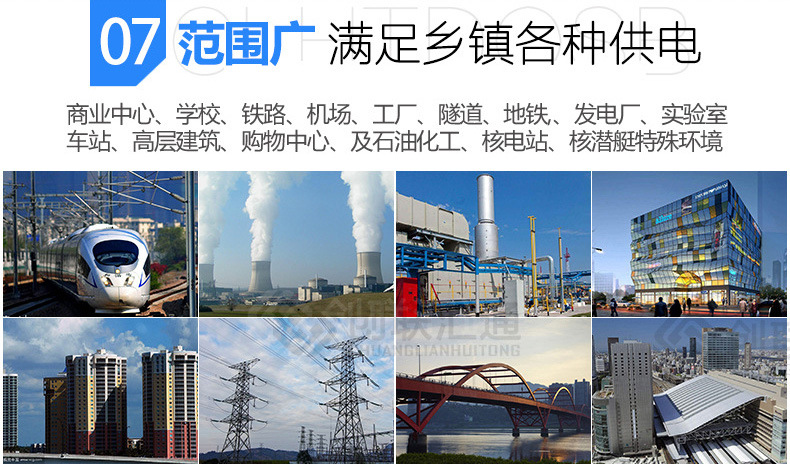 適合城市環境(安裝在地下室或地窖內),尤其適合人口密集的中心城市,適合街道、高速公路、橋梁、隧道、停車場、機場、港口、旅游景點等的照明和動力系統。