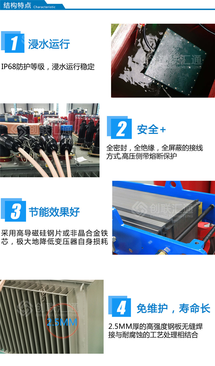 干式變壓器: 1.鐵心采用高導磁優質冷軋硅鋼片,接縫小、損耗低、噪音少。 2.線圈層間,匝間采用美杜邦公司NOME-410絕緣材料,H級耐熱等級,可在200攝氏度長期運行。 3.線圈真空浸漆,浸漬漆完全滲透到線圈深層。160-170攝氏度烘燥固化,機械強度高。 4.器身采用變壓真空干燥,器身表面覆蓋一層防潮防暈漆,有良好的絕緣性能。5.殼體為長方形大波紋結構,箱蓋與箱沿有良好的隔爆面,殼體能夠承受1Mpa的內部壓力。 6.該產品有良好的散熱性能和絕緣性能,可在高溫、高濕等惡劣環境條件下正常運行。